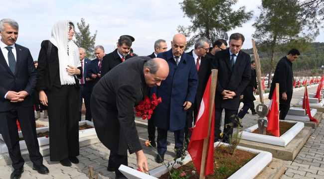 Kahramanmaraş Büyükşehir Belediye Başkanı Hayrettin Güngör, Kurtuluş Bayramı etkinliklerine katılmak üzere şehre gelen Kuzey Kıbrıs Türk Cumhuriyeti Cumhurbaşkanı Ersin Tatar ile Kapıçam Şehir Mezarlığı’nı ziyaret etti. 66. Hükümet Tarım ve Orman Bakanı Prof. Dr. Vahit Kirişci, Vali Mükerrem Ünlüer, milletvekilleri Ömer Oruç Bilal Debgici, Mevlüt Kurt ve Dr. İrfan Karatutlu, Garnizon Komutanı Tuğgeneral Emin Mehmet Terzioğlu, İl Jandarma Komutanı Tuğgeneral Gökhan İnan ve İl Emniyet Müdürü Nurettin Gökduman’ın da yer aldığı ziyarette heyet, deprem şehitlerini dualarla yâd etti. Başkan Hayrettin Güngör, “Kurtuluş Bayramı etkinliklerimize katılmak üzere şehrimize gelen KKTC Cumhurbaşkanımız Sayın Ersin Tatar ile deprem şehitlerimizi kabirleri başında dualarla andık. 6 Şubat depremlerinde kaybettiğimiz tüm canlarımıza bir kez daha Allah’tan rahmet diliyoruz” dedi.