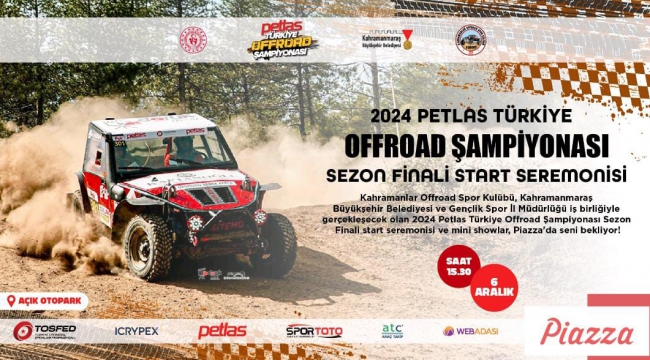 Türkiye’nin en prestijli motor sporları organizasyonlarından biri olan 2024 Türkiye Offroad Şampiyonası’nın sezon finali, Kahramanmaraş’ın doğal güzellikleriyle ünlü Kapıçam Tabiat Parkı’nda gerçekleştirilecek. Kahramanmaraş Büyükşehir Belediyesi ev sahipliğinde, Kahramanlar Offroad Spor Kulübü ve Gençlik ve Spor İl Müdürlüğü iş birliğiyle düzenlenecek bu büyük organizasyon, 6 - 8 Aralık tarihleri arasında sporseverlere unutulmaz anlar yaşatacak. Etkinlik, 6 Aralık Cuma günü saat 15.30’da Piazza AVM açık otoparkında yapılacak start seremonisiyle başlayacak. Yarış heyecanı, 7 ve 8 Aralık tarihlerinde Kapıçam Tabiat Parkı’nda sürecek. Sürücüler, zorlu parkurlarda yeteneklerini sergilerken, izleyiciler adrenalin dolu anlara tanıklık edecek. Doğanın içinde düzenlenecek bu etkinlik, hem yarış heyecanını hem de bölgenin doğal güzelliklerini ön plana çıkaracak.